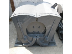 工作方式:通过电机的正反转来实现电液推杆进行往复运动,控制扇形闸门的开合,闸门之间是依靠齿轮传动。