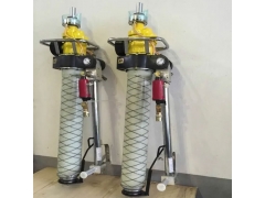 压缩空气经过滤器、注油器进入操纵臂,开启马达控制阀 开启气腿控制阀,压缩空气进入气腿,气腿伸长,关闭气腿控制阀,气腿上腔余气放空,重力回落。开启水阀,冲洗水进入钻杆冲洗钻孔